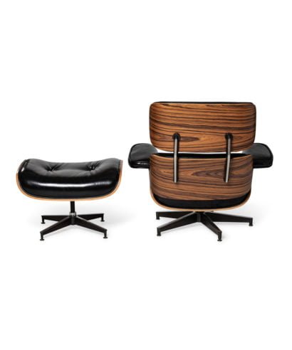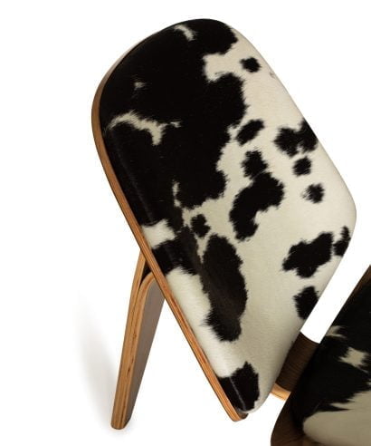 חומר גלם : עץ מלא בגוון כהה, מושב עור שחור ולבן .
