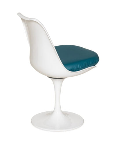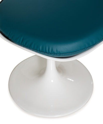כסא מעצבים עשוי פלסטיק יצוק בשילוב רגל ׳׳קונוס׳׳ עשויה ברזל. מושב מרופד כרית דמוי עור עבה ונוחה במיוחד בגוון טורקיז כחול.