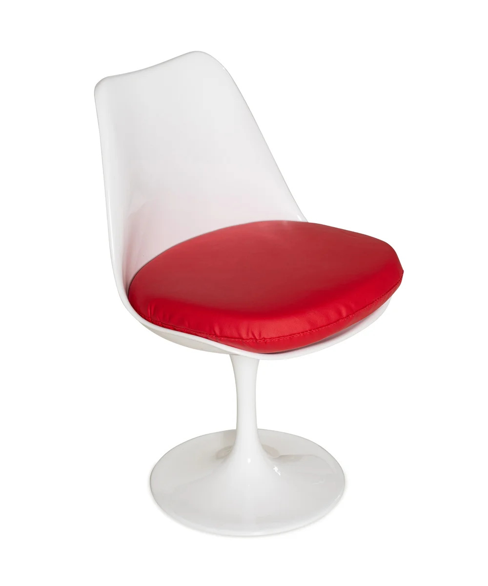 כסא מעצבים עשוי פלסטיק יצוק בשילוב רגל ׳׳קונוס׳׳ עשויה ברזל. מושב מרופד כרית דמוי עור עבה ונוחה במיוחד בצבע אדום.