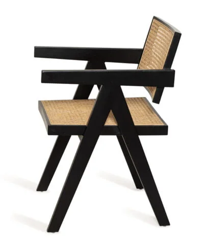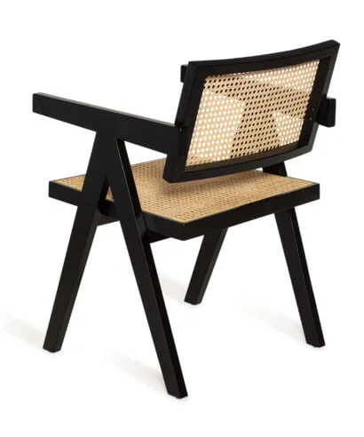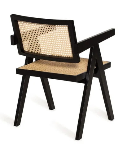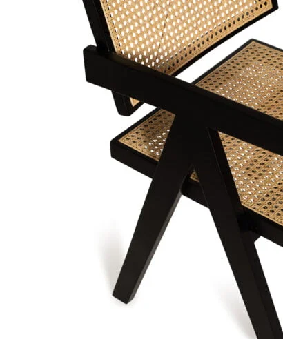 חומר גלם : גוף הכסא עשוי עץ מלא בצבע שחור, מושב הכסא עשוי ראטן טבעי.