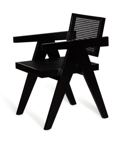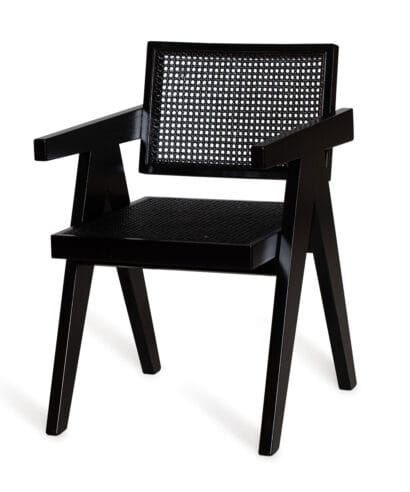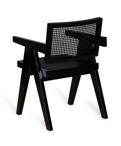 חומר גלם : גוף הכסא עשוי עץ מלא בצבע שחור, מושב הכסא עשוי ראטן שחור.