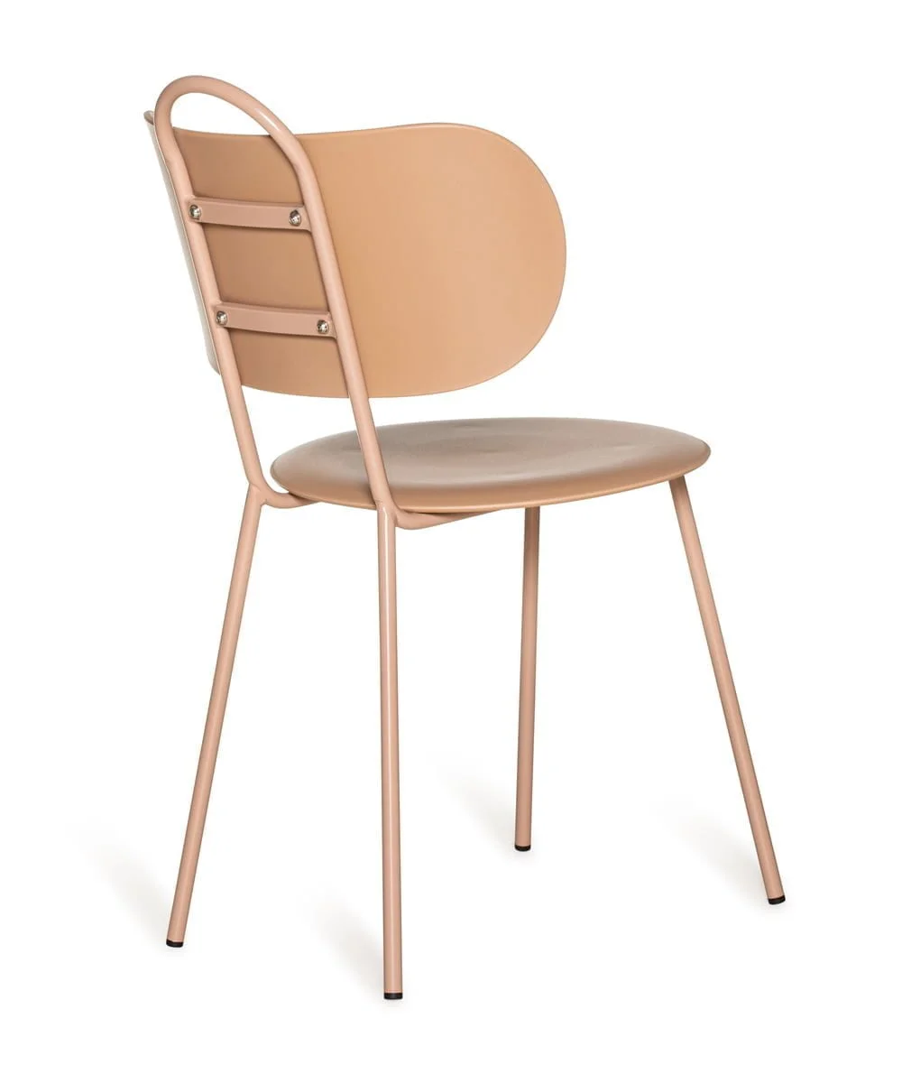 חומר גלם : גוף מטאל בגוון ורוד , מושב וגב כסא פלסטיק קשיח בשלל צבעים.