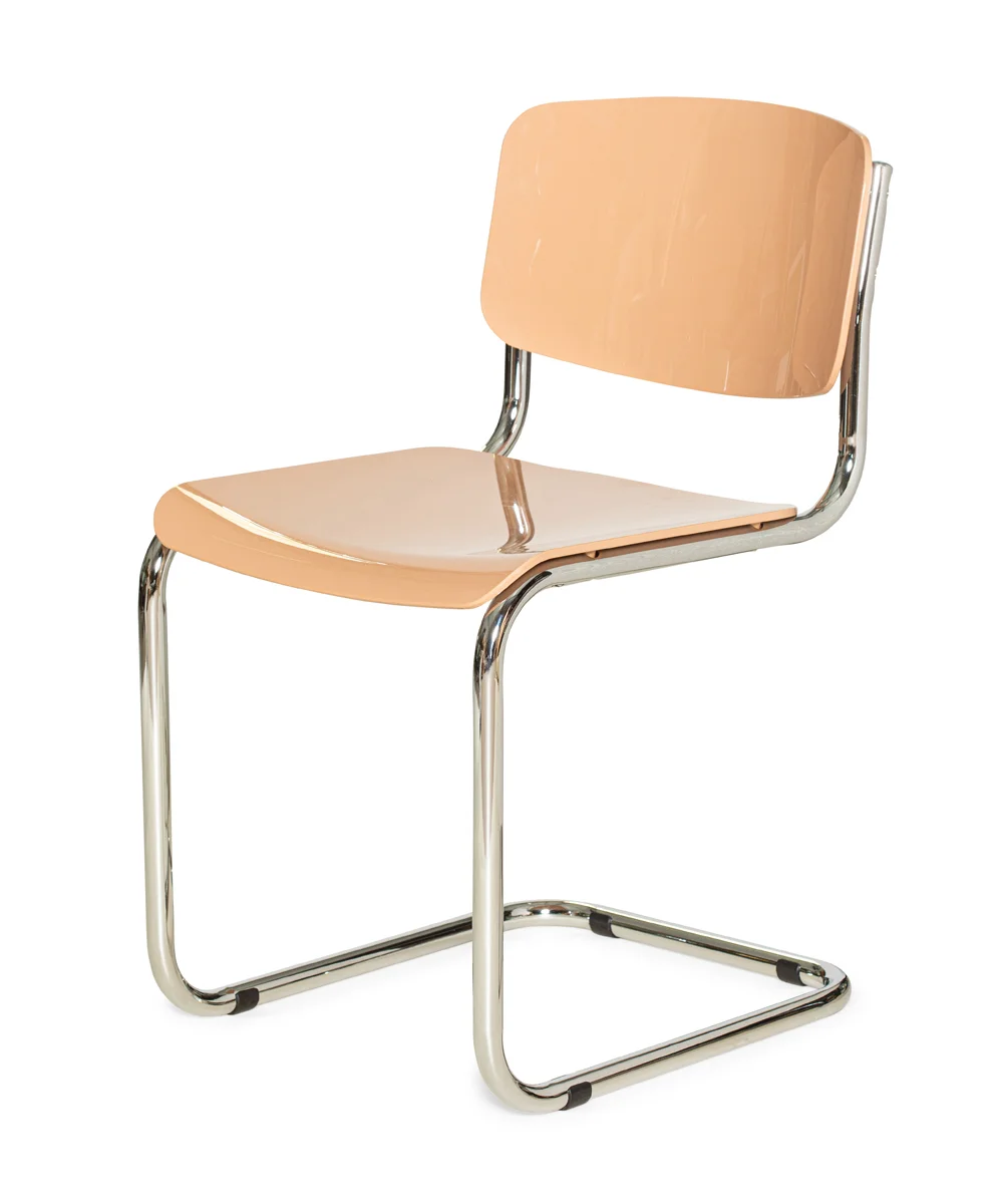 חומר גלם : גב ומשב הכסא עשויים פלסטיק יצוק קשיח, בצבע ורוד פסטל מבריקה, גוף הכסא עשוי ברזל ניקל. הכסא נוח במיוחד ומשלב את שנות ה2000 יחד עם שנות ה70. מתאים במיוחד לפינות אוכל מודרניות.