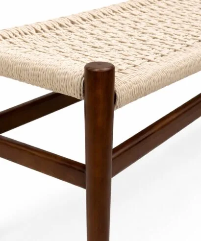 חומר גלם : רגלי הספסל עשויים עץ מלא בגוון אגוז, בשילוב חבל טבעי.