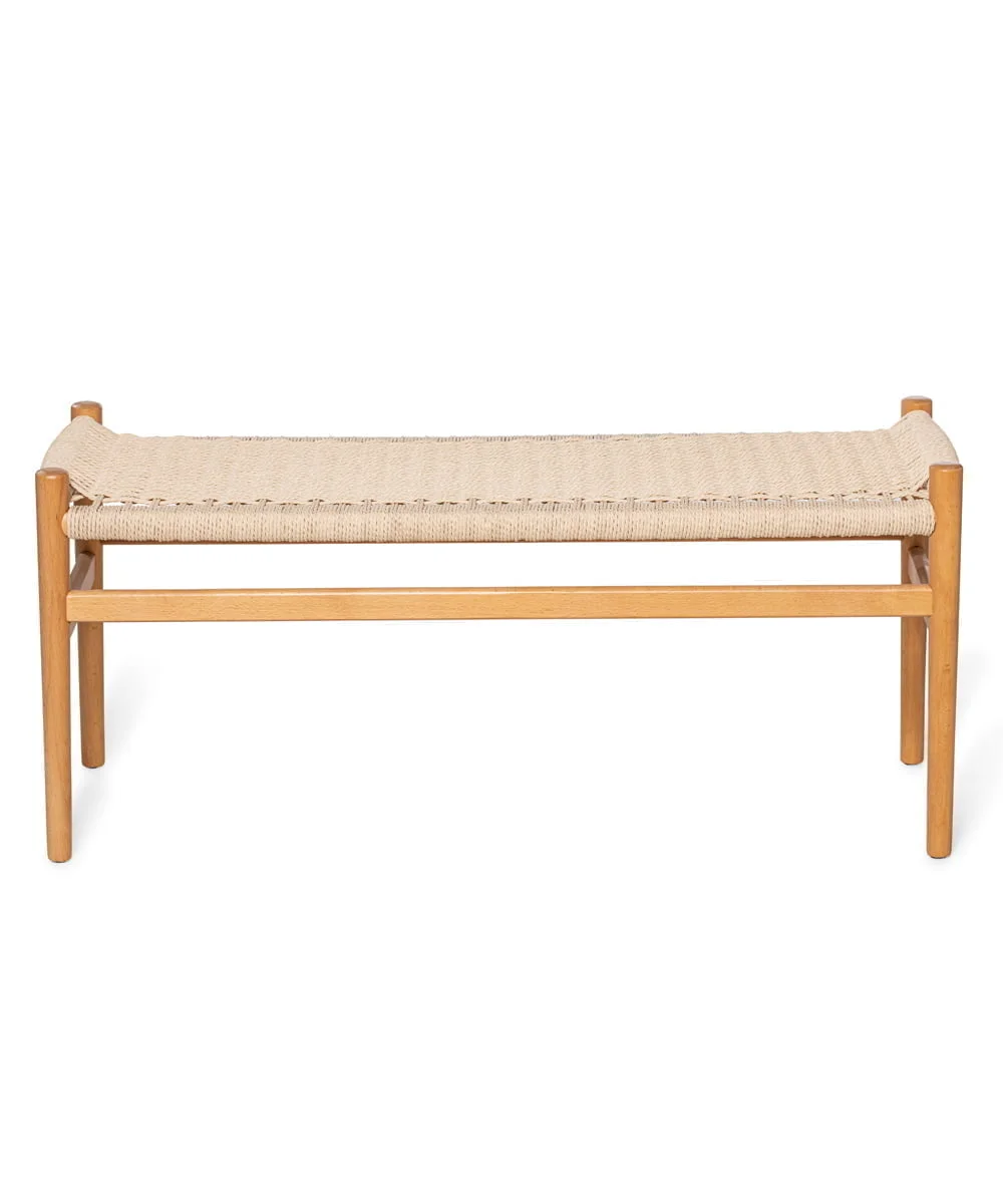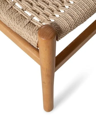 חומר גלם : רגלי הספסל עשוים עץ מלא בגוון בהיר,מושב רקום חבל בגוון עץ בהיר.