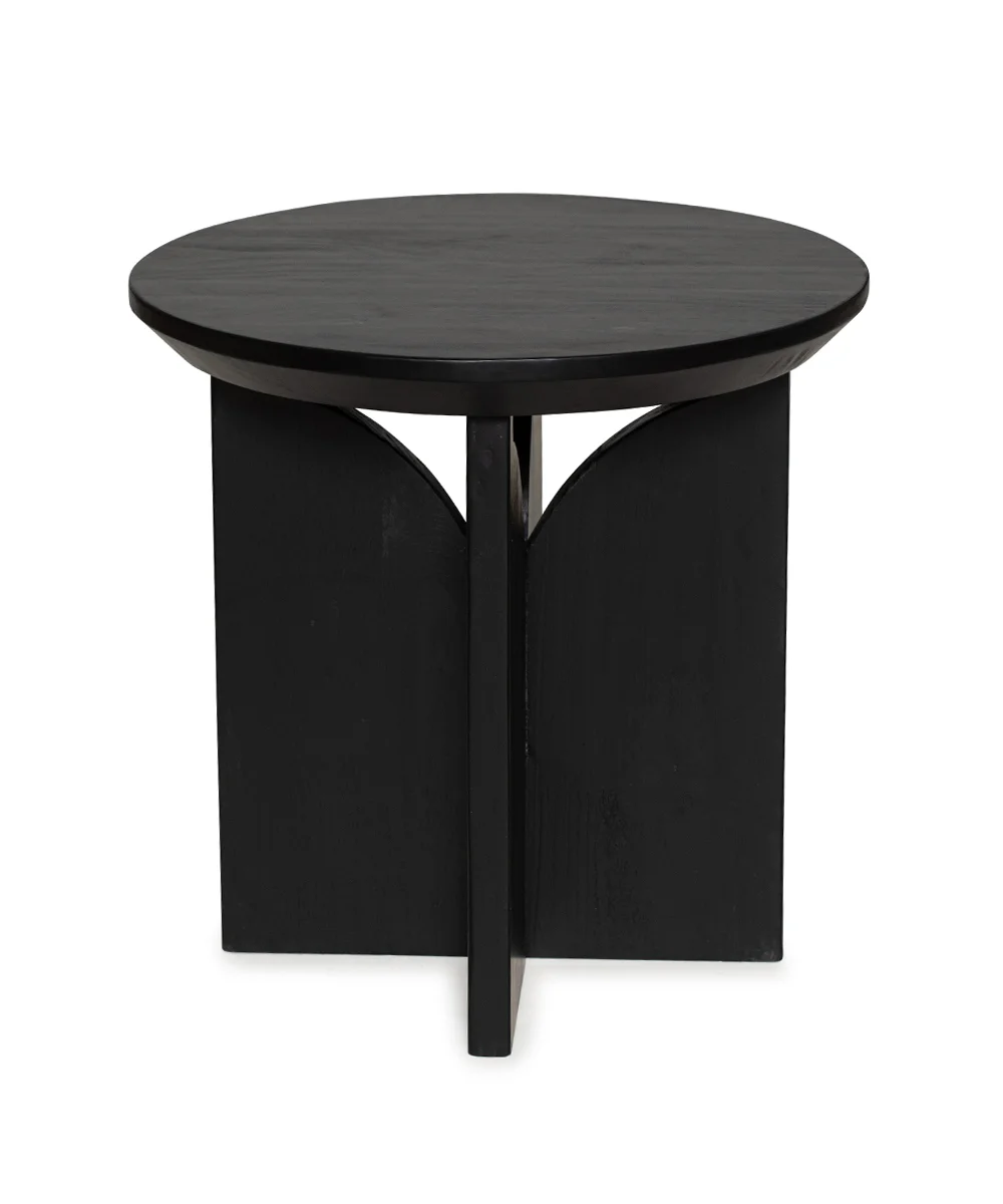 שולחן צד עשוי עץ מלא בצבע שחור מט,