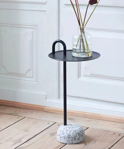 חומר גלם : בסיס אבן טבעית גוף ופלטה ברזל מוחלק בצבע שחור.