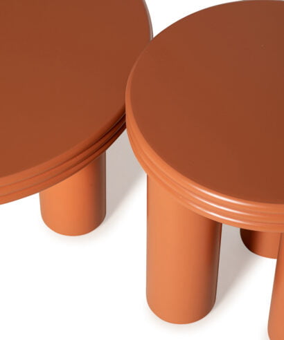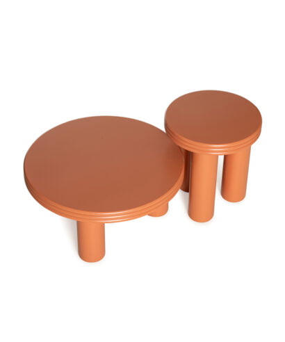 סט שולחנות עשויים עץ מלא בצביעה בתנור.