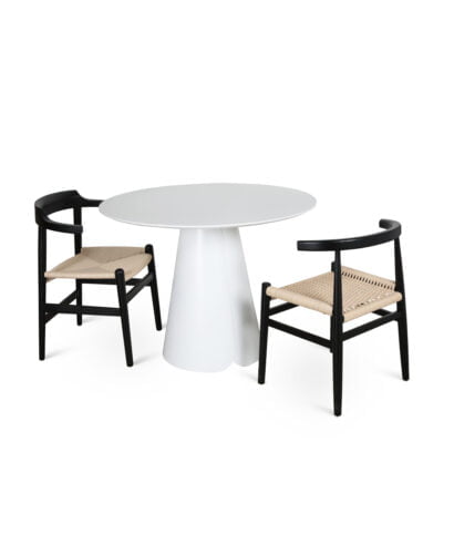 שולחן מודרני המשלב רגל קונוס עשויה ברזל בגוון לב הכוללת פרט חיבור בחלק התחתון והעליון שמדמה הרמוניה של חיבור בין צידי השולחן, פלטה בגוון לבן עשויה mdf איכותית במיוחד ועמידה לשריטוט ולכלוכים.