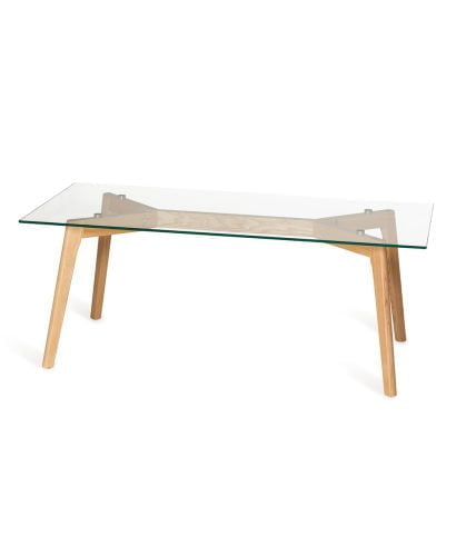 חומר גלם : זכוכית מחוסמת בשילוב רגלי עץ בגוון טבעי.