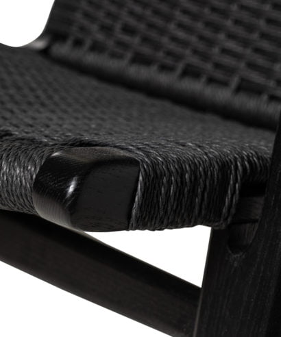 חומר גלם : מושב וגב הכורסא עשויים חבל ראטן שחור, גוף הכורסא עשוי עץ אלון מלא שחור.