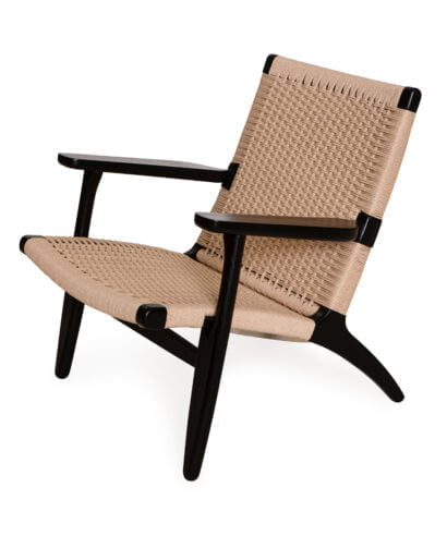 חומר גלם : מושב וגב הכורסא עשויים חבלי ראטן טבעיים, גוף הכורסא עשוי עץ אלון מלא בצבע שחור.