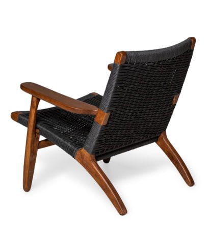 חומר גלם : מושב וגב הכורסא עשויים חבלי ראטן שחור, גוף הכורסא עשוי  עץ אלון מלא בגוון אגוז כהה.