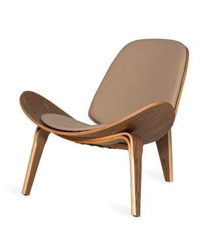 קלאסיקה מפורסמת שתשנה כל פינה או סלון, כורסאת הצדפה עשויה עץ מלא עם גימורים מושלמים, גוון הכורסא צבע עץ אגוז, גוון pu חום כהה ׳׳מוקה׳׳.