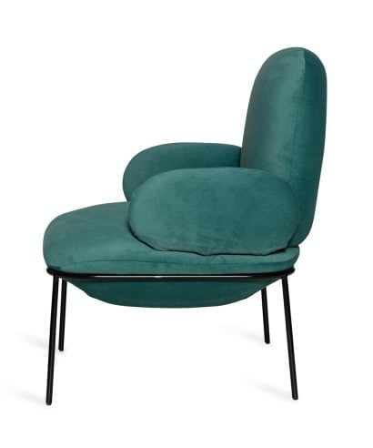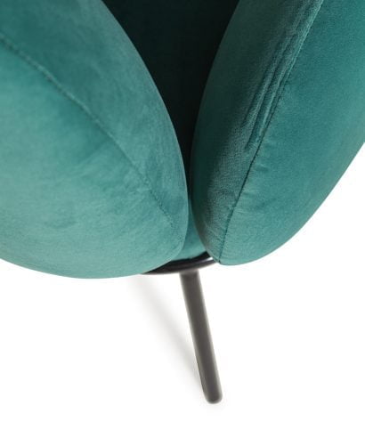 חומר גלם : בד קטיפה מפנק בגוון ירוק בקבוק ורגלי מטאל בגוון שחור מבריק.