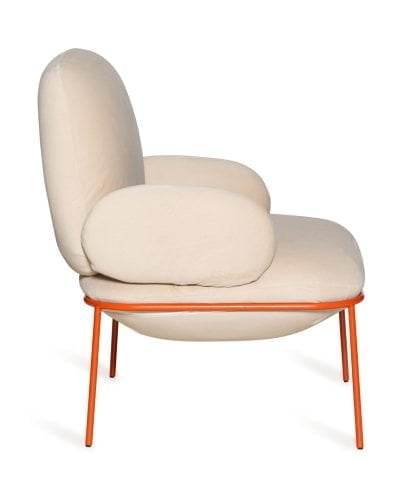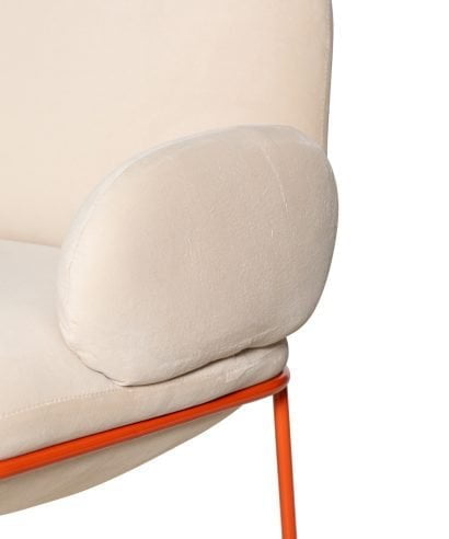 חומר גלם : בד קטיפה מפנק בגוון לבן אפרפר ורגלי מטאל בגוון כתמתם טרנדי.