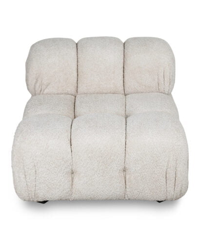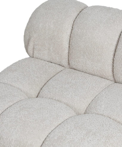כורסאת מצעבים, נוחה ומפנקת במיוחד, עשויה בד בוקלה בגוון קרם קפה.
