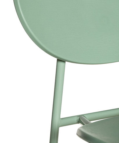 חומר גלם : גוף כסא עשוי מטאל בגוון ירוק , מושב וגב כסא עשוים פלסטיק קשיח .