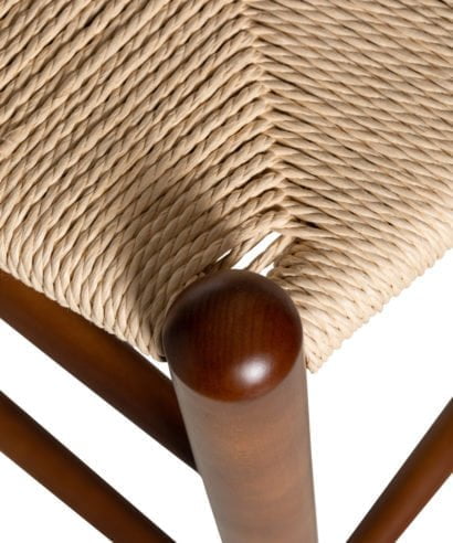 חומר גלם : גוף הכסא עשוי עץ מלא בגוון כהה,מושב רקום חבל ראטן בגוון בהיר
