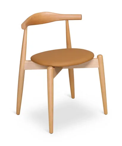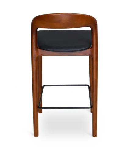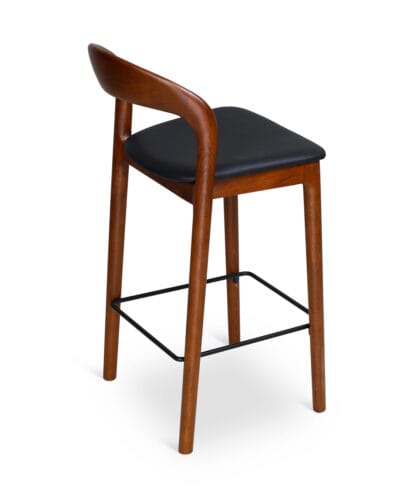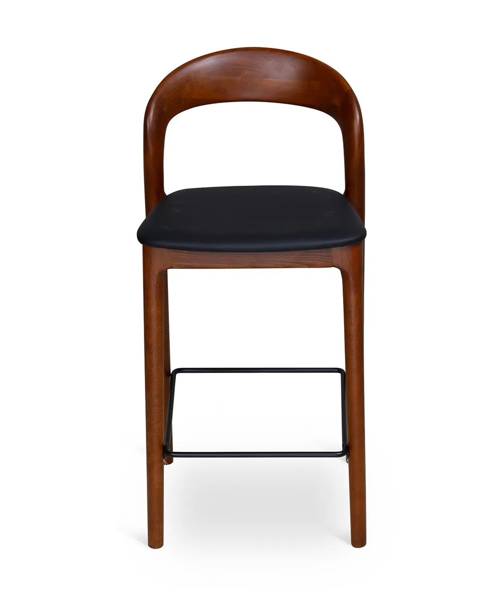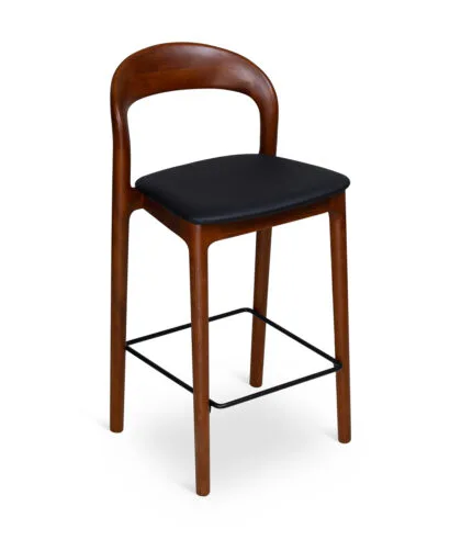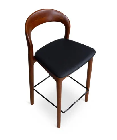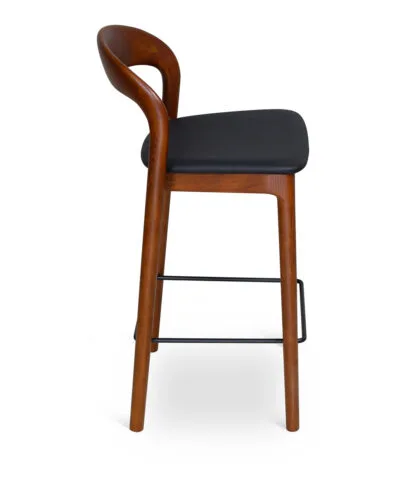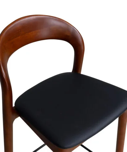 כסא בר מעצבים בעיצוב קלאסי, עץ מלא בגימורים עגולים ונקיים בשילוב מושב דמוי עור נוח.