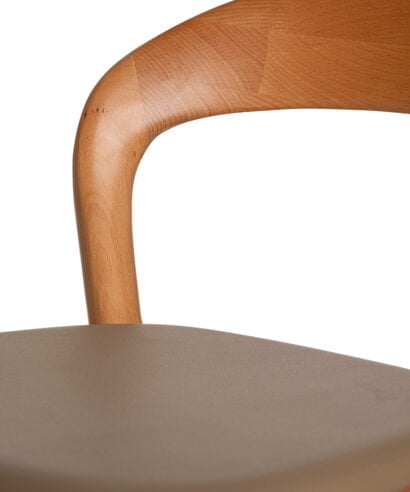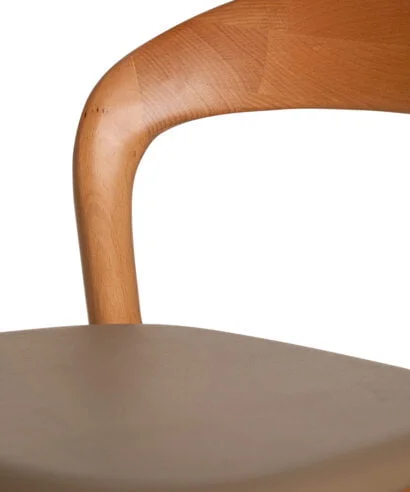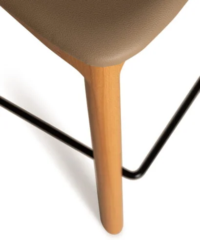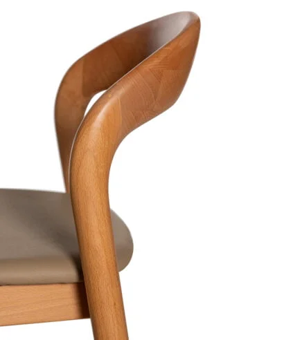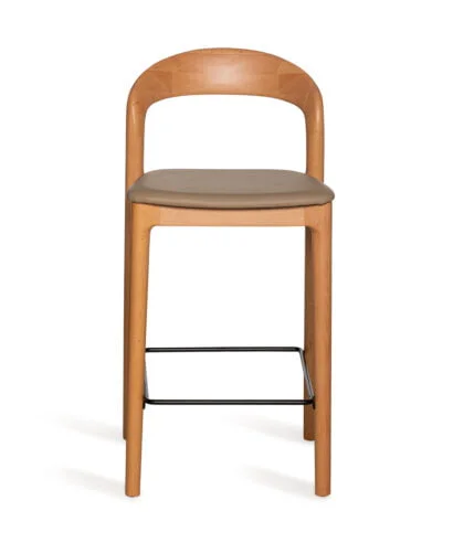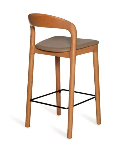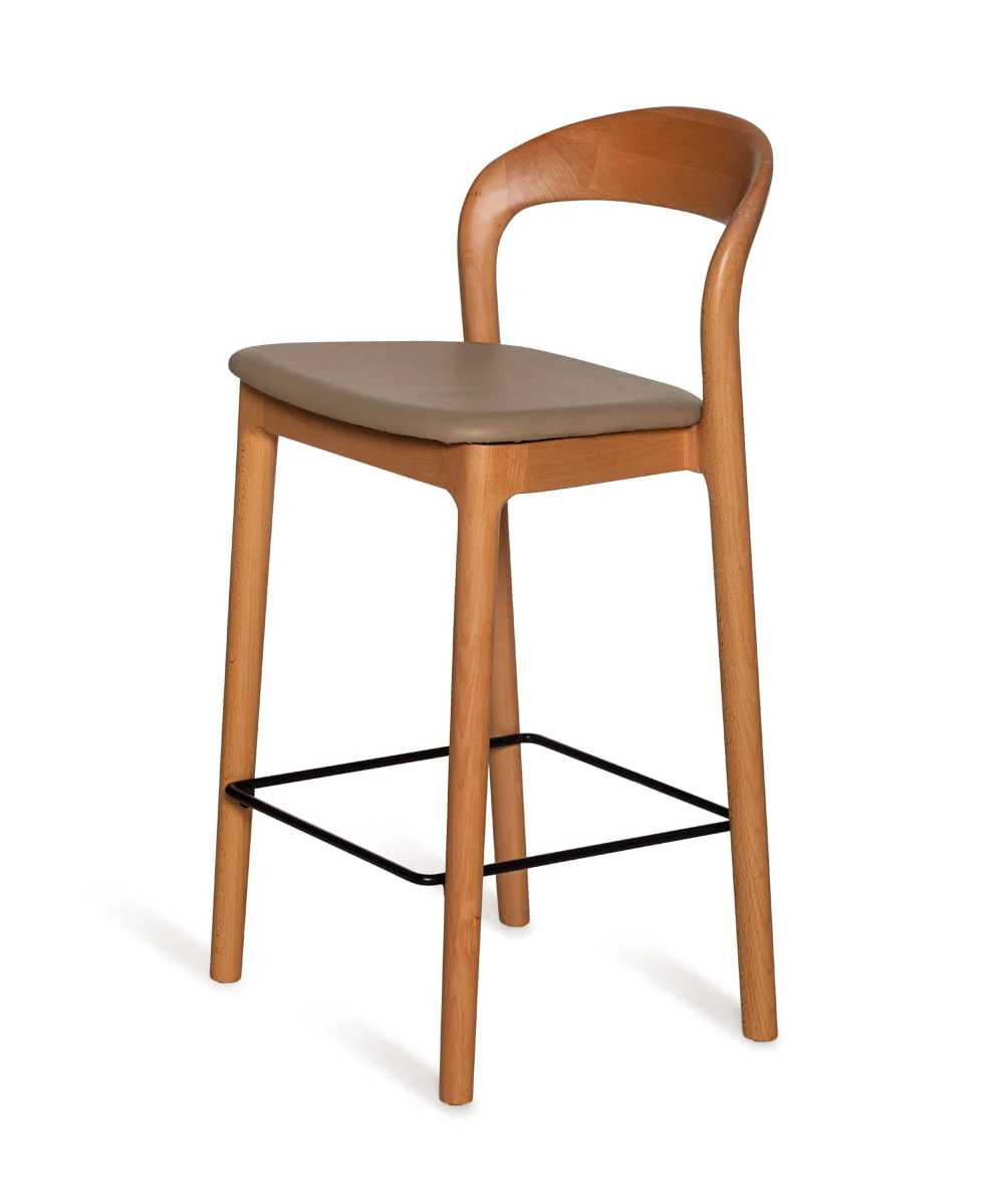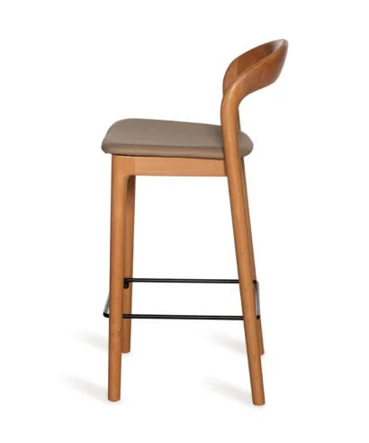 כסא בר מעצבים בעיצוב קלאסי, עץ מלא בגימורים עגולים ונקיים בשילוב מושב דמוי עור נוח.