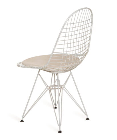חומר גלם : גוף כסא עשוי מטאל בצבע לבן, מושב מרופד עור בצבע לבן.