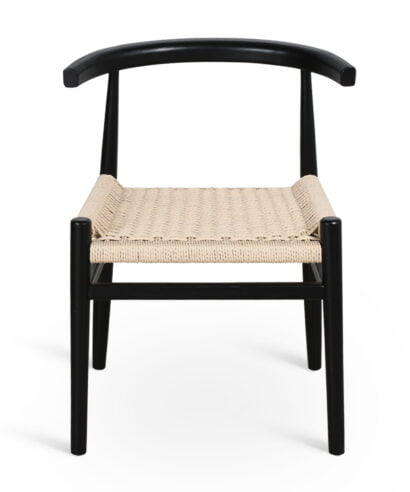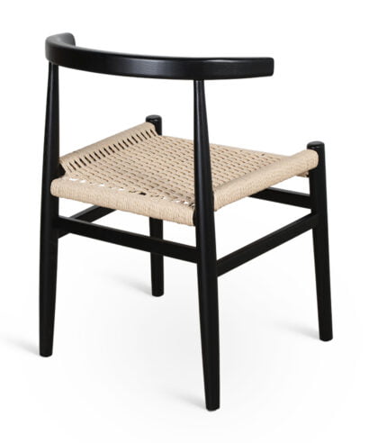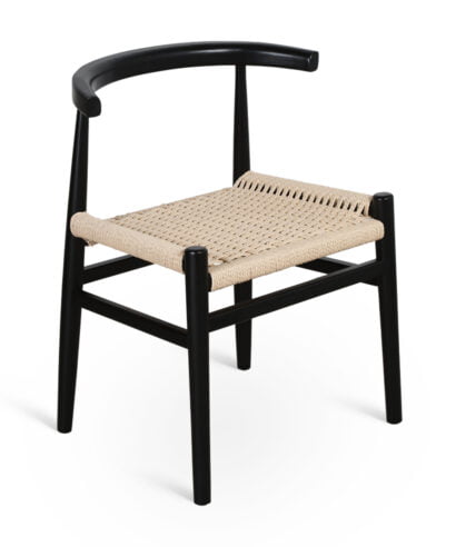 חומר גלם : מושב הכסא עשוי חבל ראטן טבעי גוף הכסא עשוי עץ מלא בצבע שחור מט.