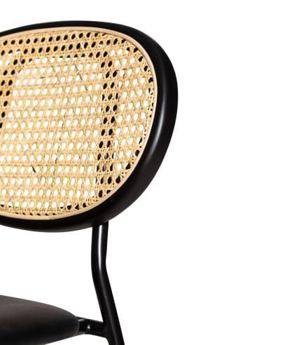 חומר גלם : גוף מטאל בגוון שחור, גב ראטן ומושב דמוי עור בצבע שחור מט.