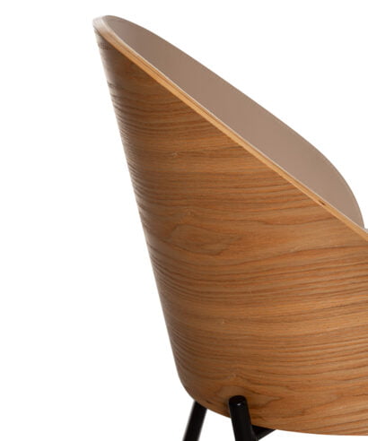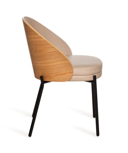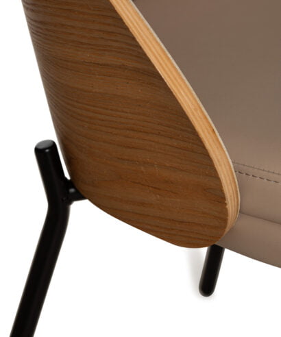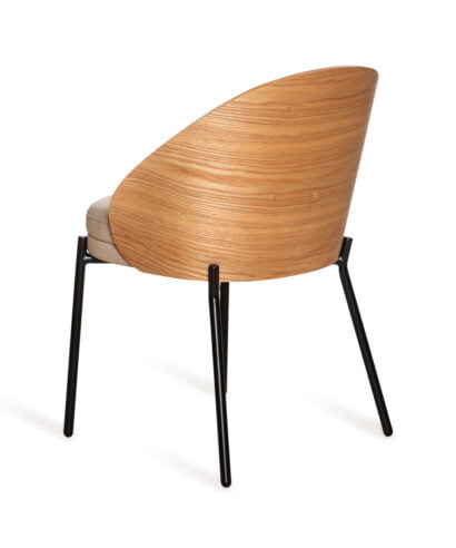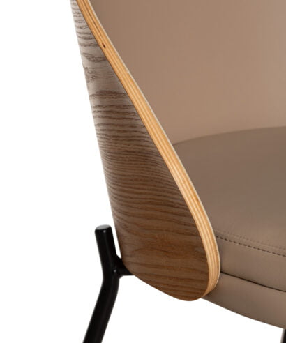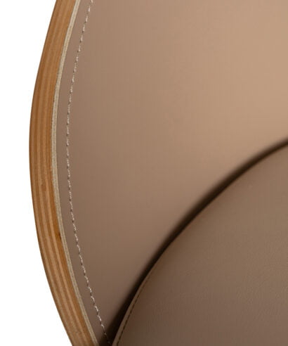 חומר  גלם : מושב וגב הכסא עשויים כרית מרופדת בבד דמוי עור נוחה במיוחד בגוון קפה,  גב מעוגל בתוספת עץ מלא במושב הגב האחורי, רגליים עשויות ברזל בצבע שחור.