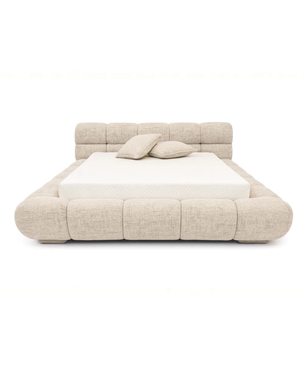 מיטה יוצאת דופן עם עיצוב קוביות מרופדות, היוצרות מראה מודרני, נועז ומזמין. בסיס המיטה והגב עטופים בריפוד עשיר היוצר תחושה של רכות ונוחות עוטפת, לצד עיצוב שמושך מיד את העין והופך את המיטה לפריט מרכזי בחדר השינה. השילוב בין צורה גאומטרית מודולרית לריפוד איכותי מעניק איזון מושלם בין יוקרה, נוחות ואופי ייחודי.