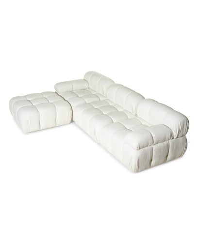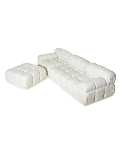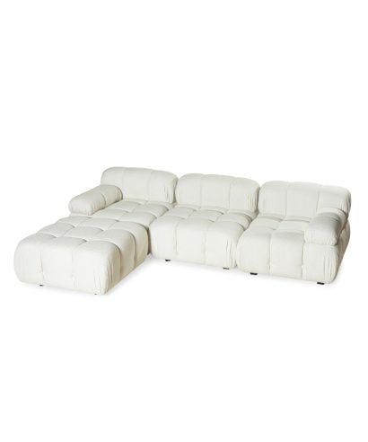 ספה מודולרית מעוצבת המורכבת משלושה חתיכות שונות הניתנות לחיבור בחלקן התחתון.