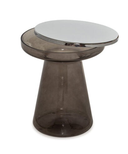 שולחן צד מודרני עשוי זכוכית בשילוב טופ מטאל נשלף.