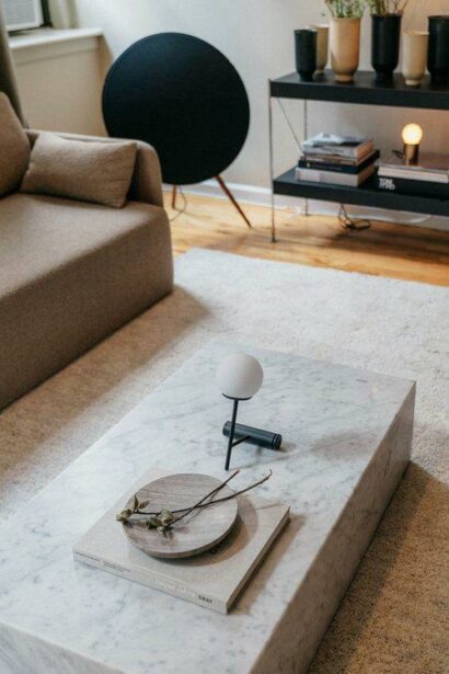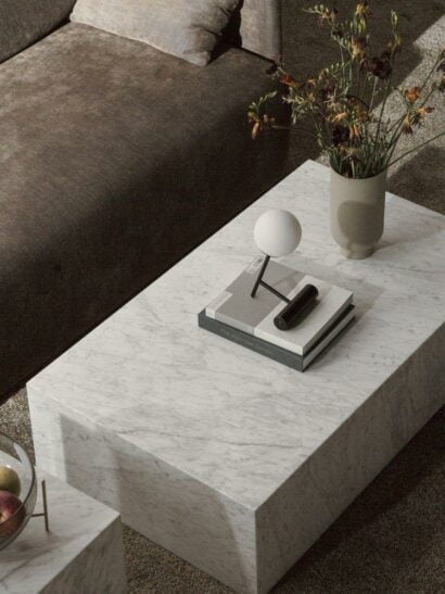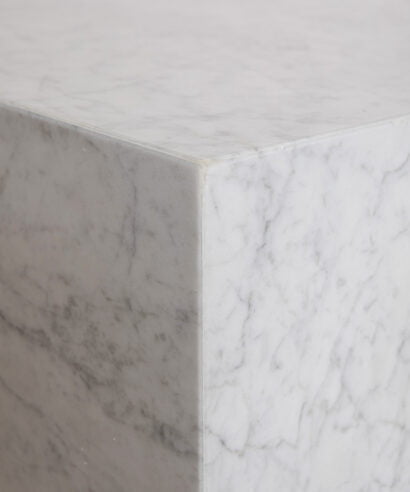 שולחן שיש קררה בגוון לבן עם בריקים אפרפרים,