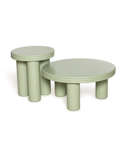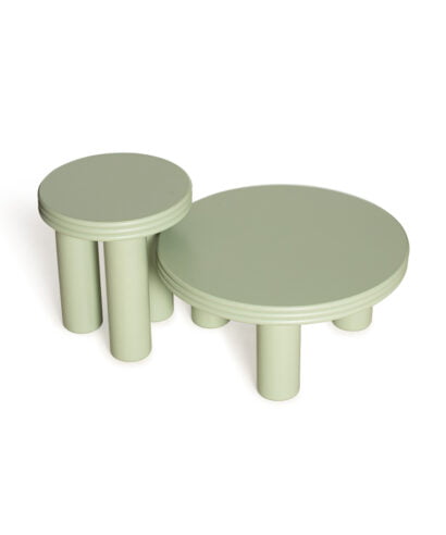 סט שולחנות עשויים עץ מלא בצביעה בתנור.