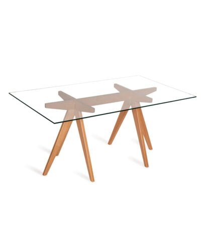 רגלי עץ בגוון טבעי במראה חם ונעים בשילוב זכוכית מחוסמת.