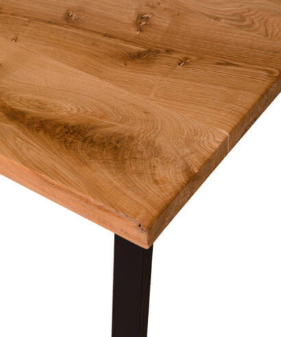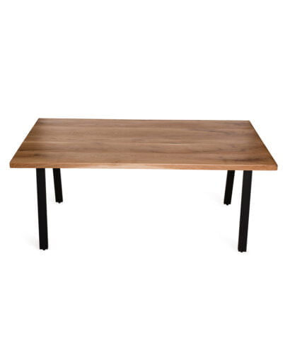 שולחן עץ מלא בשילוב רגלי ברזל.