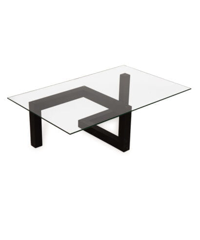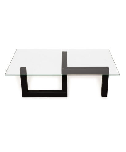 חומר גלם : טופ זכוכית שקופה, רגל ברזל בצבע שחור מט.