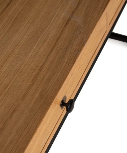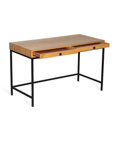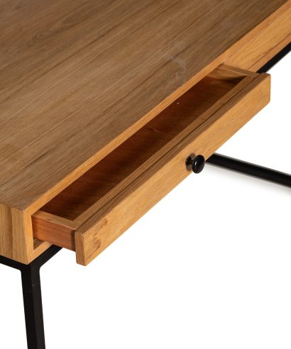 חומר גלם : עץ אלון בגוון טבעי ורגליים מטאל בשחור + מגירות מסמכים עם מנגנון טריקה שקטה.