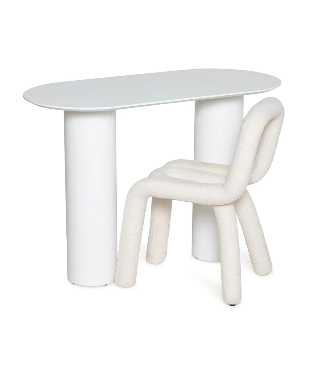 שולחן משרדי/איפור, שילוב של רגלי עץ עגולות עם פלטת עץ, גוון אלון טבעי.