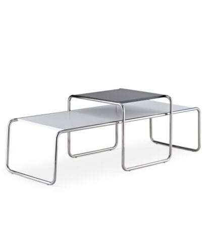 סט שולחנות מודולרי בעיצוב מינימליסטי עם קווים נקיים ותחושת ריחוף.