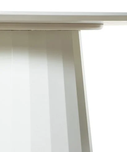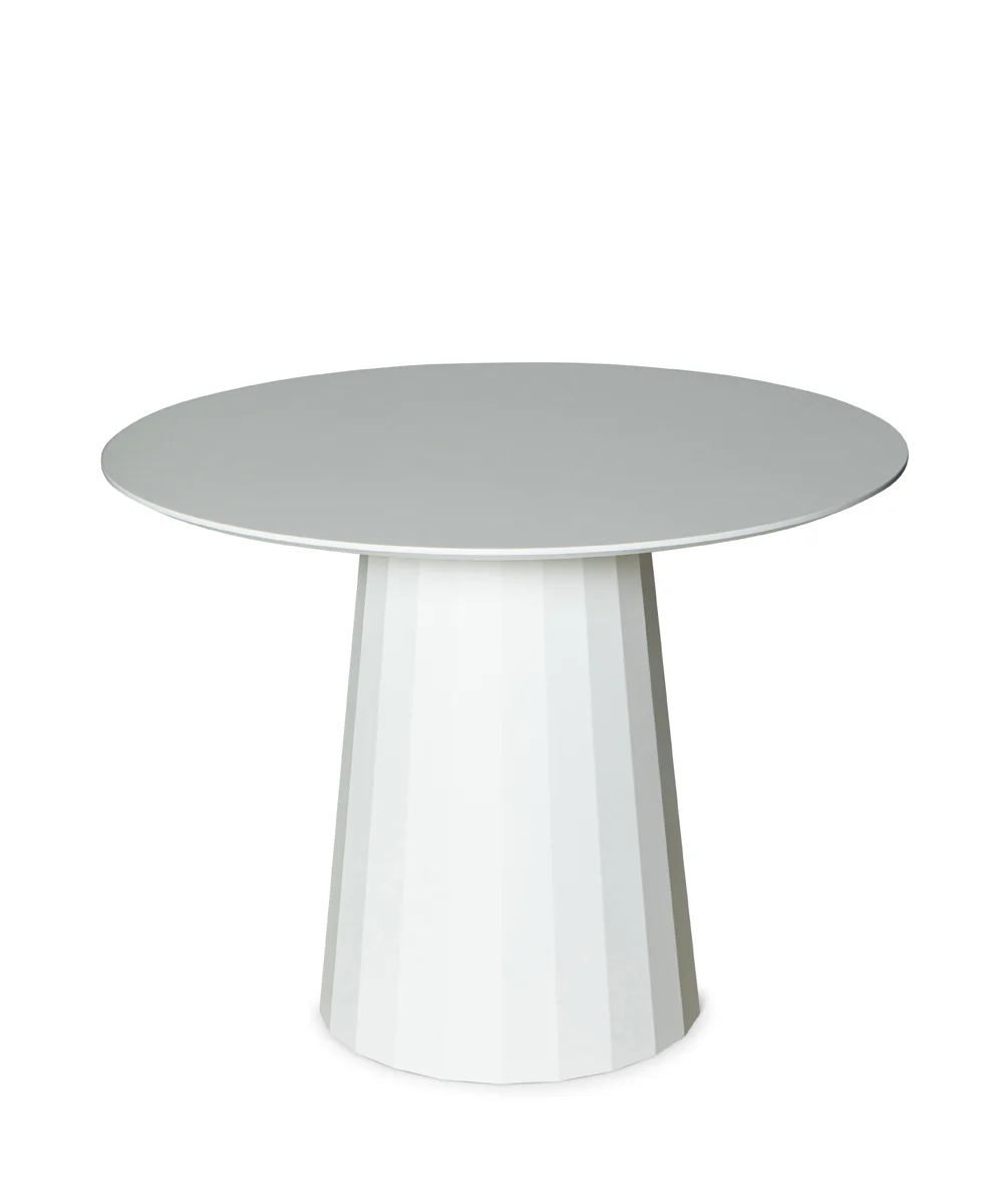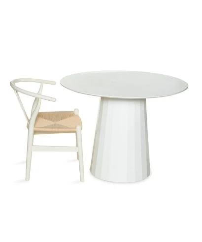 שולחן קונוס עשוי עץ מוחלק בצבע לבן בשילוב רגל קונוס עשויה ברזל בצבע לבן.