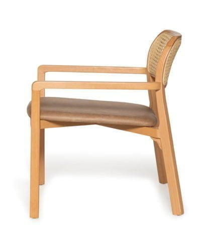 חומר גלם : גוף עשוי עץ מלא בגוון בהיר,מושב הכסא עשוי PU דמוי עור בגוון קרם.